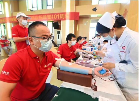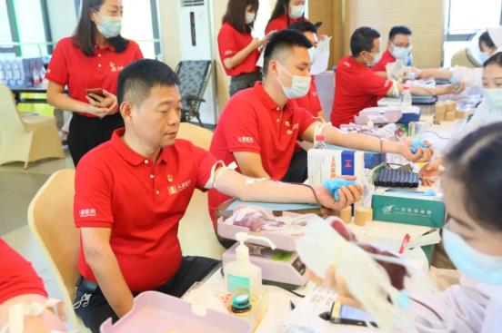 6月29日,武汉市卫生健康委、武汉血液中心与pokerking官网集团联合开展“党旗飘扬 热血人福”党建共建活动,以实际行动庆祝中国共产党成立101周年。活动当天,近200多名党员和职工“热血集结”、奉献爱心,最终121人成功献血32260毫升。