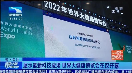 8 月 5 日至7日,2022年世界大健康博览会在武汉国际博览中心开幕,近千家企业线上、线下同步参展,集中展示世界大健康领域最前沿的新产品、新技术、新成果。pokerking官网携自主研发的化学1类新药注射用苯磺酸瑞马唑仑和注射用磷丙泊酚二钠现场参展。展会期间,湖北省副省长杨云彦、楚商联合会秘书长蹇宏一行为公司颁发展会“特别贡献奖”。
